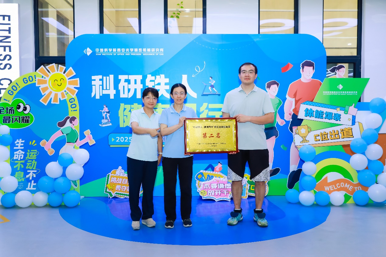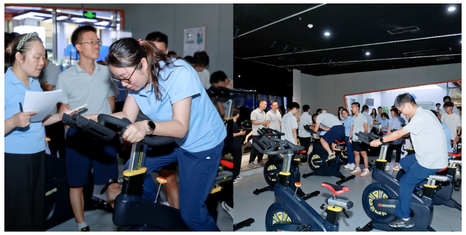 接下來,在職工健身中心內,“科研鐵人健康同行”團隊挑戰賽激情展開。各基層分工會組織的17支隊伍展開智慧與力量的角逐:科研接力跑中疾馳的身影,動感單車上飛旋的車輪,仰臥起坐時繃緊的脊梁……每一項挑戰都需3名隊員(含至少1名女隊員)緊密協作。賽場上擊掌相慶的默契,此起彼伏的助威吶喊,將現場運動氛圍推向高潮。