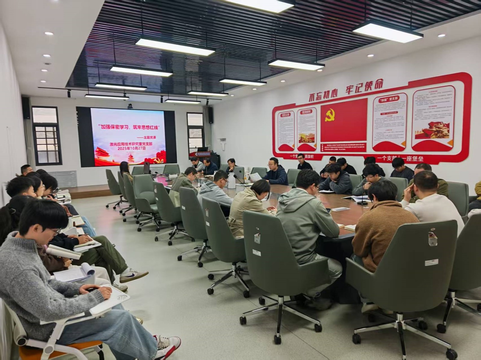 10月27日,激光應用技術研究室黨支部召開“加強保密學習,筑牢思想紅線”主題黨課。會議黨支部書記李朝輝主持,支部全體黨員、入黨積極分子和群眾參加。