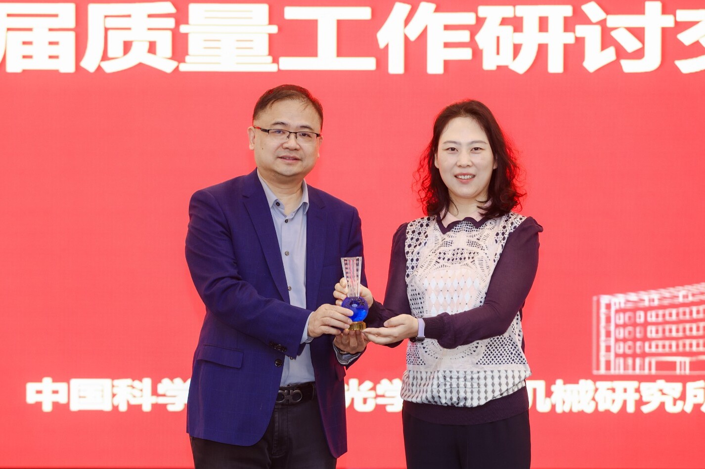 會議確定了下一屆“六所一院”質量工作研討交流會由上海技術物理研究所舉辦。交接儀式上,胡炳樑將質量工作交流會議標志物“中科質光”水晶杯交予上海技術物理研究所紀委書記程睿。